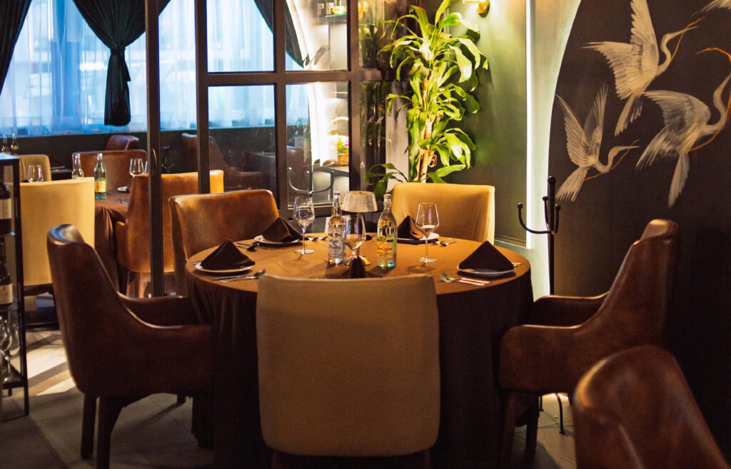 El restaurante Alsacia es un rincón especial, pleno de elegancia y distinción. Cada detalle de la decoración está pensado para hacer de la visita del comensal algo memorable. En primer lugar, destaca el mural del artista poblano Esteban Fuentes de María, que casi permite tocar a sus protagonistas, “las cigüeñas”. La iluminación, cuidadosamente diseñada, le brinda calidez y vida; las mesas, decoradas con sobriedad, la mantelería café y las sillas cómodas invitan a los comensales a extender la sobremesa.